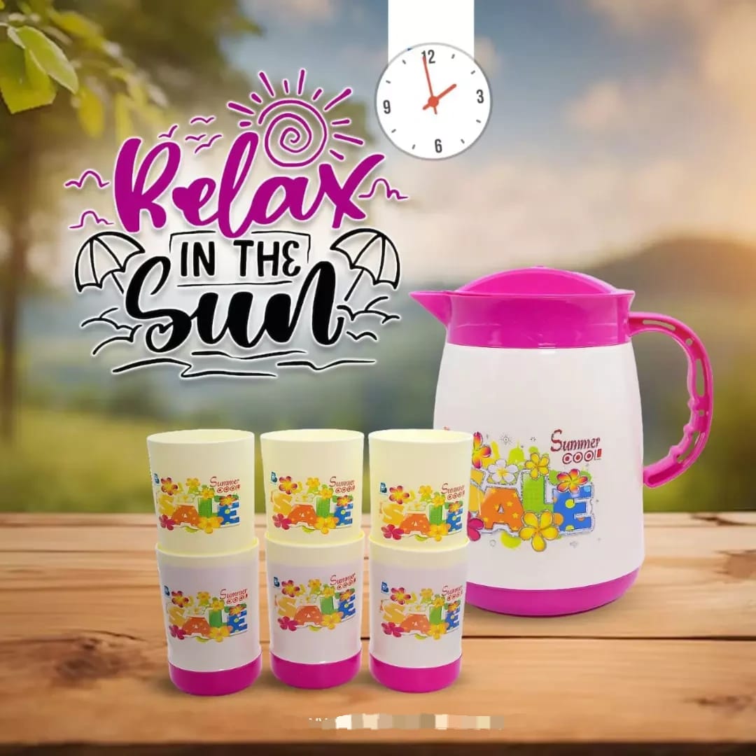 Serve water, juice, and beverages in style with this beautifully designed Insulated Jug & 6 Glasses Set, crafted for both elegance and everyday practicality. The jug features a 2.2-litre insulated body that helps maintain beverage temperature for longer, making it ideal for warm climates and daily family use.