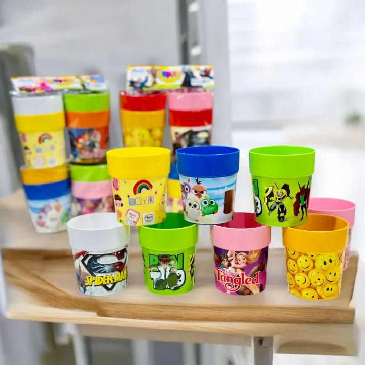 Kids Cartoon Printed Glass - Colorful Drinking Cups for Boys & Girls (Pack of 4)Kids Cartoon Printed Glass – Colorful Drinking Cups for Boys & Girls (Pack of 4)