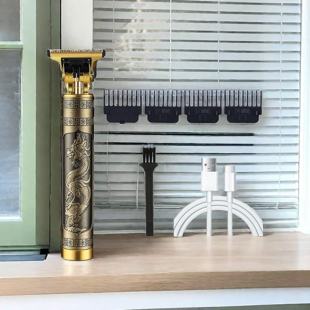 Upgrade your grooming routine with the T9 Vintage Hair Clipper, featuring a luxurious dragon-engraved metal body and high-performance 10W motor. This professional-grade trimmer ensures smooth, precise cutting for hair, beard, and shaping.